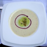 The dinner began with a Chilled Asparagus & Caramelized Fennel Soup with Maine Lobster & Braised Split Peas. A fun refreshing and tasty soup beautifully presented. All of the flavors melded wonderfully, and equally refreshing was the chilled 2012 Biokult Gruner Veltliner, an Austrian varietal that’s on par with German Riesling.Bright citrus fruit aromas alongside green apple and lime-zest that followed into the palate with muted herbal and peppery spice notes. Light-bodied, crisp with refreshing acidity. It definitely rates as one of the wines of summer. 100% Certified Organic.